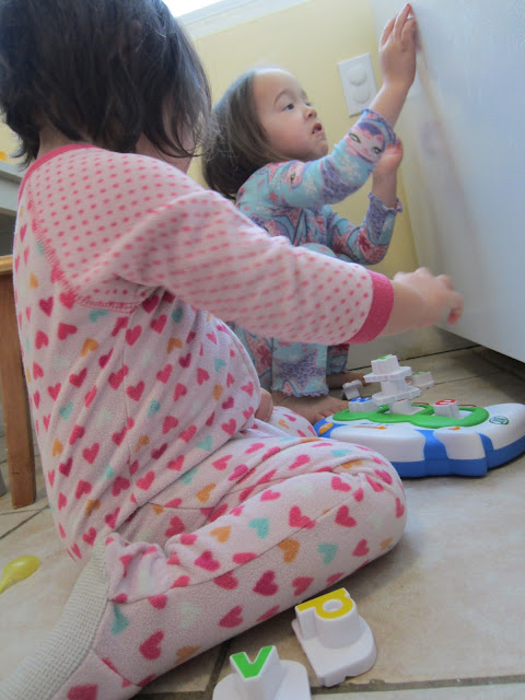 play in the kitchen.... after looking at these pictures I think we need to get dressed more! ha ha. I promise we do get dressed more than these pictures show!